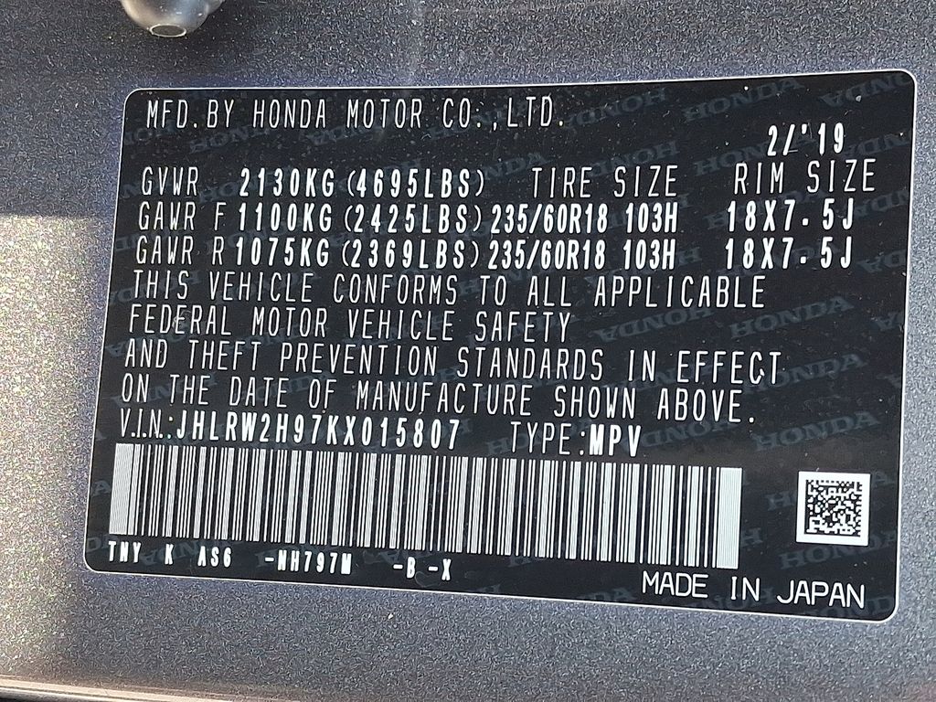 Touring | 91,054 milesStock # PUN701 | VIN # JHLRW2H97KX015807