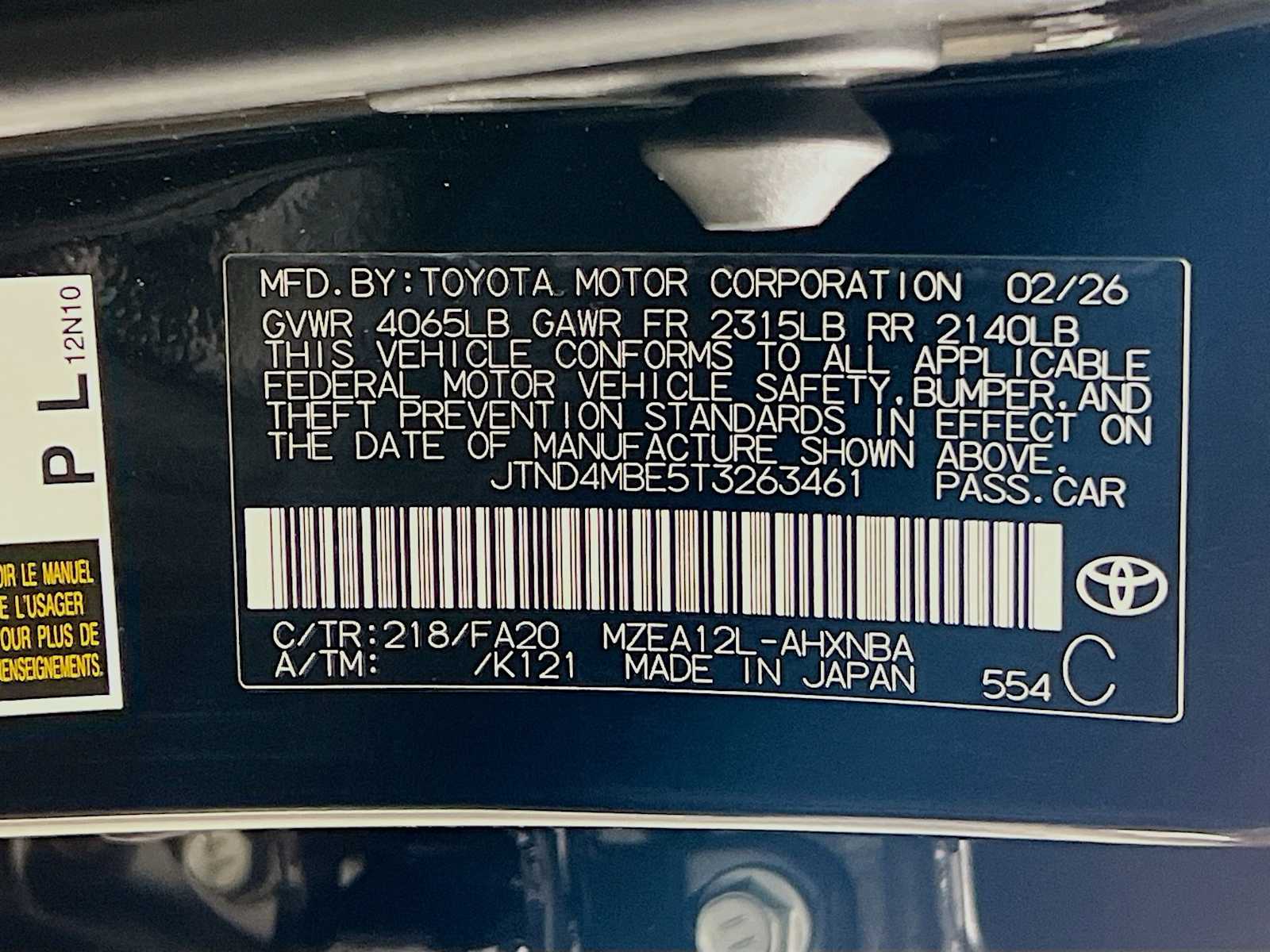 SE | 10 milesStock # 20964 | VIN # JTND4MBE5T3263461